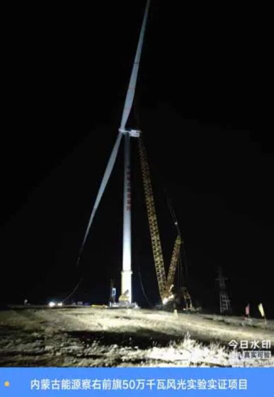 2026年1月16日19时50分,随着最后一节风机叶片精准对接,内蒙院承建的察右前旗50万千瓦风光实验实证EPC总承包项目首台风力发电机组吊装作业已圆满完成。这一重要里程碑标志着该项目正式进入风机批量安装与设备并网的冲刺阶段。