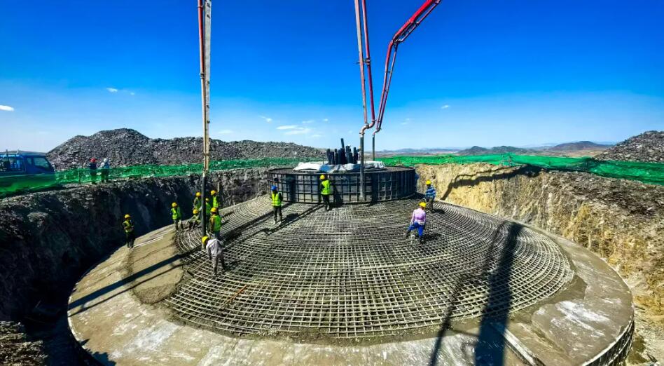 项目全部建成后,预计年发电量约12.68亿千瓦时,可满足产业园年产3万吨高性能钛和钛合金材料的用电需求,等效减排二氧化碳达126万吨,为高载能产业清洁低碳发展提供可复制、可推广实践案例。 绿电点金石 织就源网荷储供能网 高载能产业具有用电负荷大、供电稳定性要求高的特点。该项目的关键任务,是将西北戈壁丰富的风能资源有效利用起来,精准匹配钛和钛合金材料产业的用电需求。为此,项目以“源网荷储”全环节深度融合为核心,构建起一套智慧协同的绿色供能体系。 广东院项目团队统筹推进风电、储能、升压站、输电线路等关键环节建设,并为项目量身定制了源网荷储一体化平台,制定安全、可靠、经济的源网荷储控制策略,实现源源互补、源荷匹配、源网协调等动态协同与优化。该平台不仅能有效提升新能源发电效率和消纳能力,更能为产业提供稳定的绿色电能,推动经济效益最大化,实现绿色电力和新材料产业的“双赢”。 同时,项目还采用了广东院子公司广东天汇储能科技有限公司承担的智慧场站运维系统。该系统集成升压站、储能区、风场区多维数据,融合智能辅控、储能智能运维、多模态AI算法智能巡视、集电线路故障定位在线监测等功能,可提升全场站运维效率和安全水平。 长风越瀚海 深耕戈壁建绿色电站 茫茫戈壁滩深处,极端气候与复杂地质交织的自然环境,是项目团队必须直面的一大挑战。夏季地表热浪蒸腾,冬季冰雪覆盖荒原,频繁光顾的大风沙尘天气,还有松软流沙、坚硬盐碱地与季节性冻土并存的地质条件,无不考验着团队的应对能力。 关关难过关关过。广东院坚持提前谋划、科学施策、全过程管控,全力推进项目建设。 早在设计之初,项目团队就针对戈壁滩的“脾气”,从设备选型、布置方案、建筑保温节能设计等方面,进行了防风沙、耐热和抗寒的全面考量。针对复杂地质条件,项目团队对基础防盐碱腐蚀、防雷接地材料性能进行了适应性设计。同时,结合当地水资源稀缺的状况,主变消防采用排油注氮方案,并在升压站内设置废水回收池,实现水资源循环利用,最大限度降低项目对当地生态环境的影响。 进入现场实施阶段,要确保高大的风机在戈壁滩稳稳扎根,基础施工成为关键。项目团队组织了专项技术攻关,经多方案比选论证,确定了最适宜的施工方案,成功解决了凝灰岩硬质地层的开挖难题。 戈壁滩的极端温差容易导致混凝土开裂,影响风机基础强度。为此,项目团队在现场设置了混凝土搅拌站,实现混凝土供应和浇筑的紧密衔接,同时制定精细化温控养护方案,为风机基础的稳固成型提供了保障。 戈壁滩大风沙尘天气频发,也给风机吊装作业的精度和安全带来严峻挑战。在吊装关键期,项目团队建立严密的气象监测机制,与设备厂家、吊装单位紧密协同,通过科学调度,抢抓风沙间隙的作业窗口期,高效完成了16台风机的吊装工作。 让每一阵刮过荒原的风 都转化为“真金白银”的清洁电能 推动绿电与新材料产业的有机联结 助力区域高质量发展