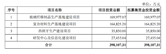 本次IPO,振石股份拟募集资金用于“玻璃纤维制品生产基地建设项目”、“复合材料生产基地建设项目”、“西班牙生产建设项目”以及“研发中心及信息化建设项目”。进一步扩大公司经营规模与提升全球竞争力和品牌影响力。