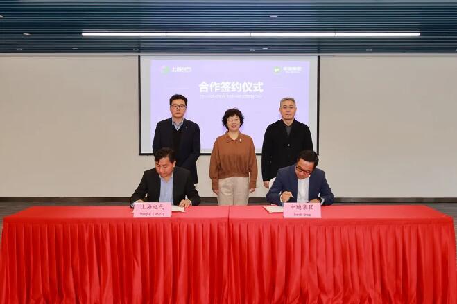 1月16日上午,上海电气与上海申迪(集团)有限公司(以下简称“申迪集团”)在上海国际旅游度假区签署战略合作框架协议及其它专项合作协议。上海电气集团党委书记、董事长吴磊,申迪集团党委书记、董事长管韬萍,党委副书记、总裁关也彤共同见证签约。