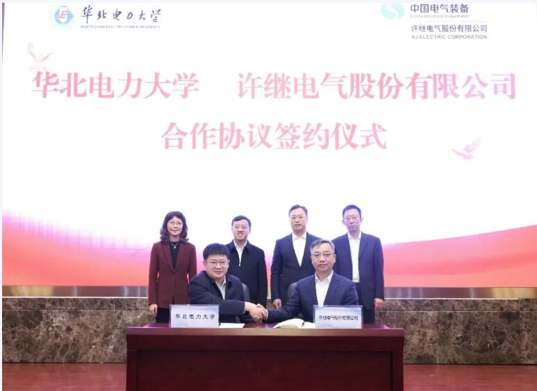 在与会领导的共同见证下,中国电气装备所属许继电气与华北电力大学签署共建联合研发中心合作协议。·