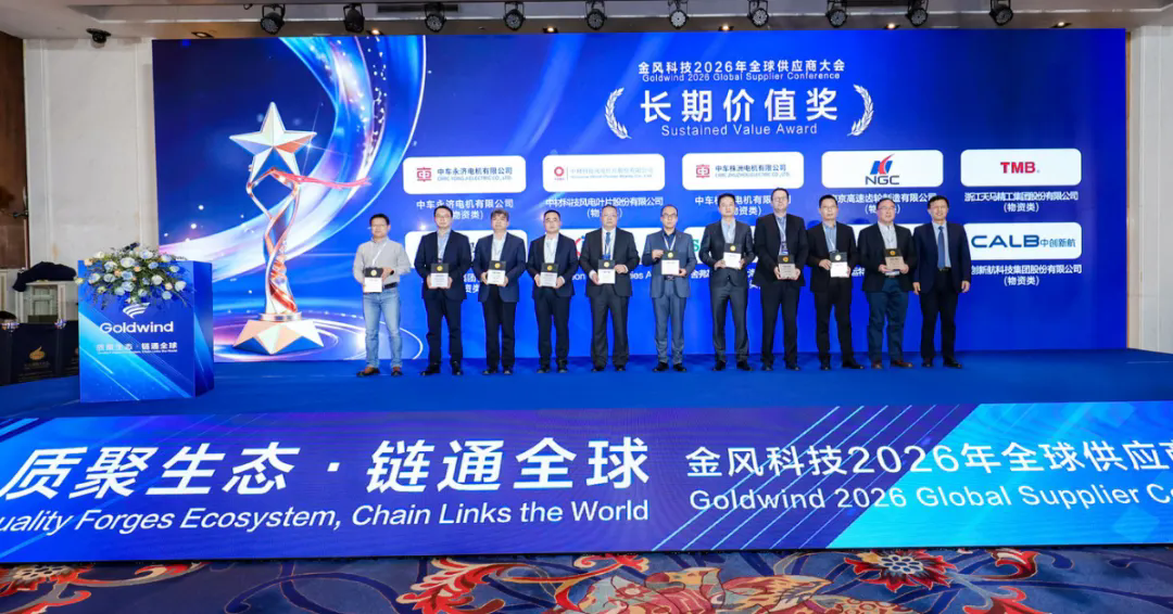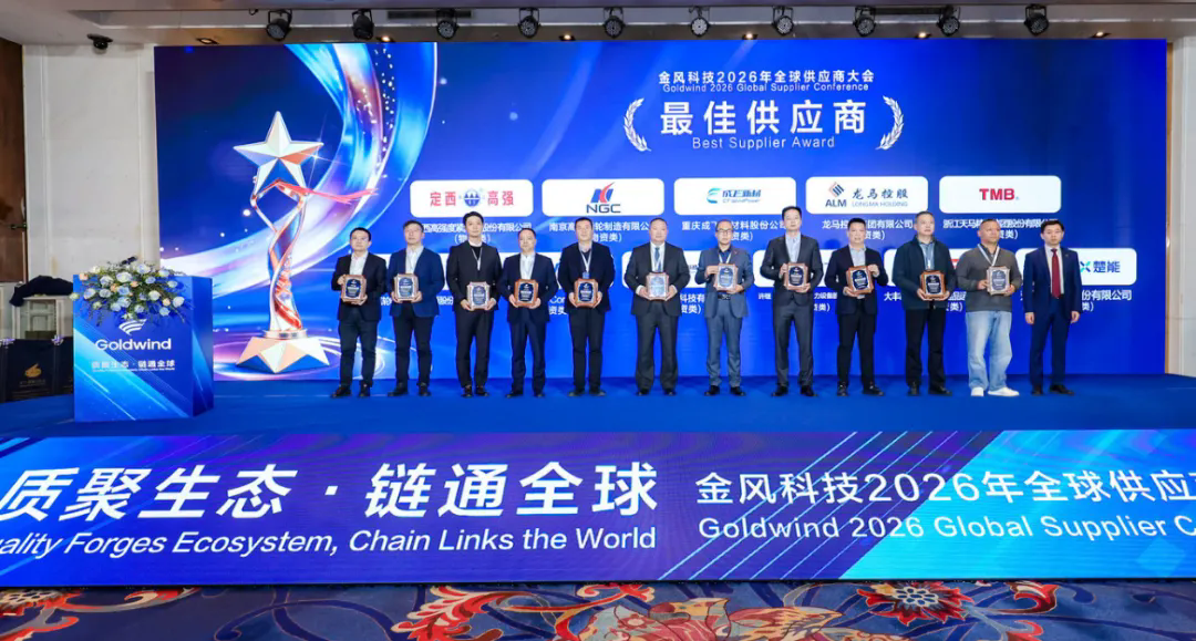 2026年2月2日,金风科技2026年全球供应商大会隆重召开。本次大会以"系统总结'十四五'丰硕成果,携手迈向'十五五'崭新征程"为主要内容,汇聚全球新能源领域伙伴,共探市场趋势、解读战略规划,聚力构建全优产业链生态、打造休戚与共的产业链命运共同体。会上,全球风电齿轮箱领域领军企业南高齿表现突出,一举斩获"最佳供应商奖"、"优秀绿色供应商奖"、"长期价值奖"三项重磅荣誉,彰显核心部件企业标杆实力。