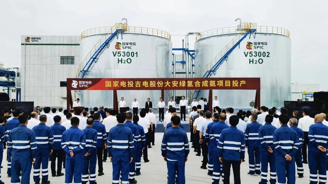 在绿氨领域 电投绿能全资子公司大安吉电绿氢能源有限公司投资建设的大安风光制绿氢合成氨一体化示范项目,是目前全球最大规模的一次性投产绿色合成氨单体项目,成功入选国资委战新产业“百大工程”。该项目动态总投资59.56亿元,建设800兆瓦风电光伏电站(风电700兆瓦、光伏100兆瓦),年制绿氢3.2万吨、绿氨18万吨,每年减碳排放约65万吨,节约标煤约23万吨。
